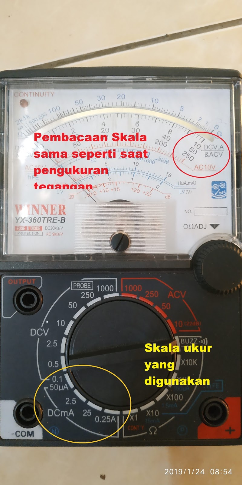 - Baca hasil pengukuran pada skala pengukuran sama seperti pembacaan besaran tegangan.